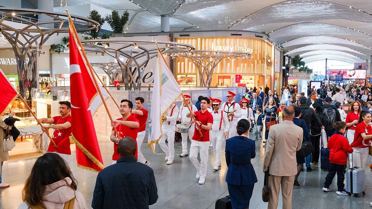 İstanbul Havalimanı’nda 23 Nisan Ulusal Egemenlik ve Çocuk Bayramı’na büyük bir coşku ve gösteriyle kutlandı. Bando gösterisi ve kortej yürüyüşüyle yapılan kutlamalara yalnızca Türk vatandaşları değil dünyanın dört bir yanından gelen yabancı uyruklu vatandaşlar da yoğun ilgi gösterdi.