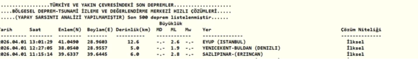 İstanbul’da hissedilen bir deprem meydana geldi. Kandilli Rasathanesi verilerine göre, merkez üssü Eyüpsultan olan depremin büyüklüğü 2.6, derinliği de 12.6 kilometre olarak ölçüldü